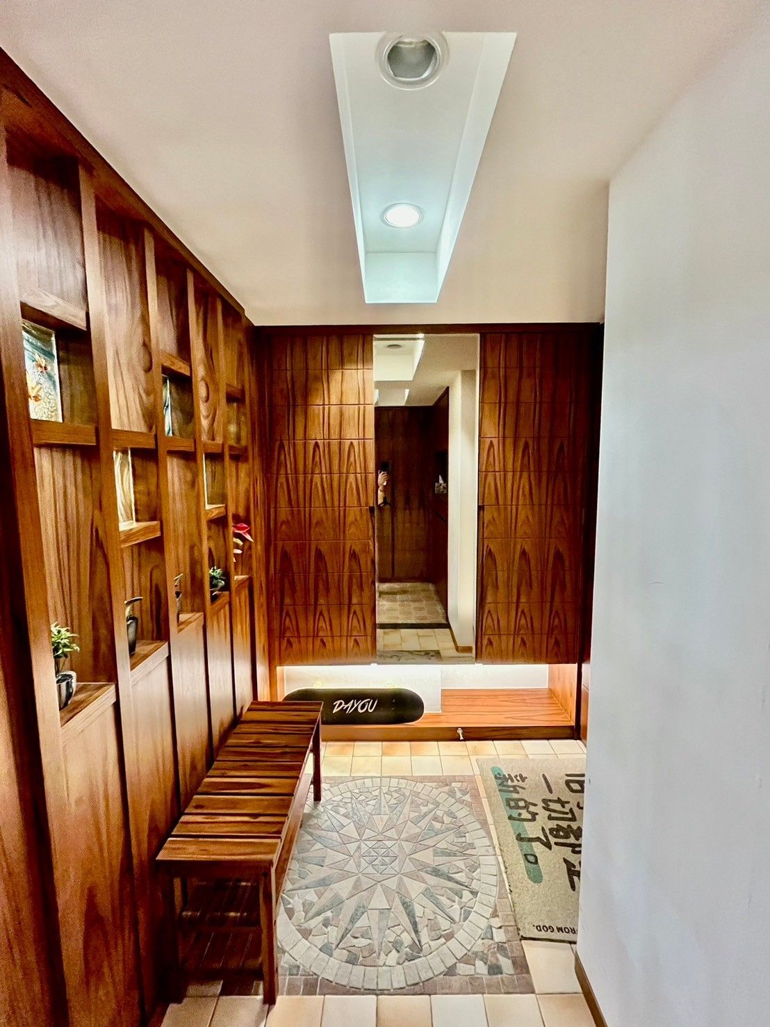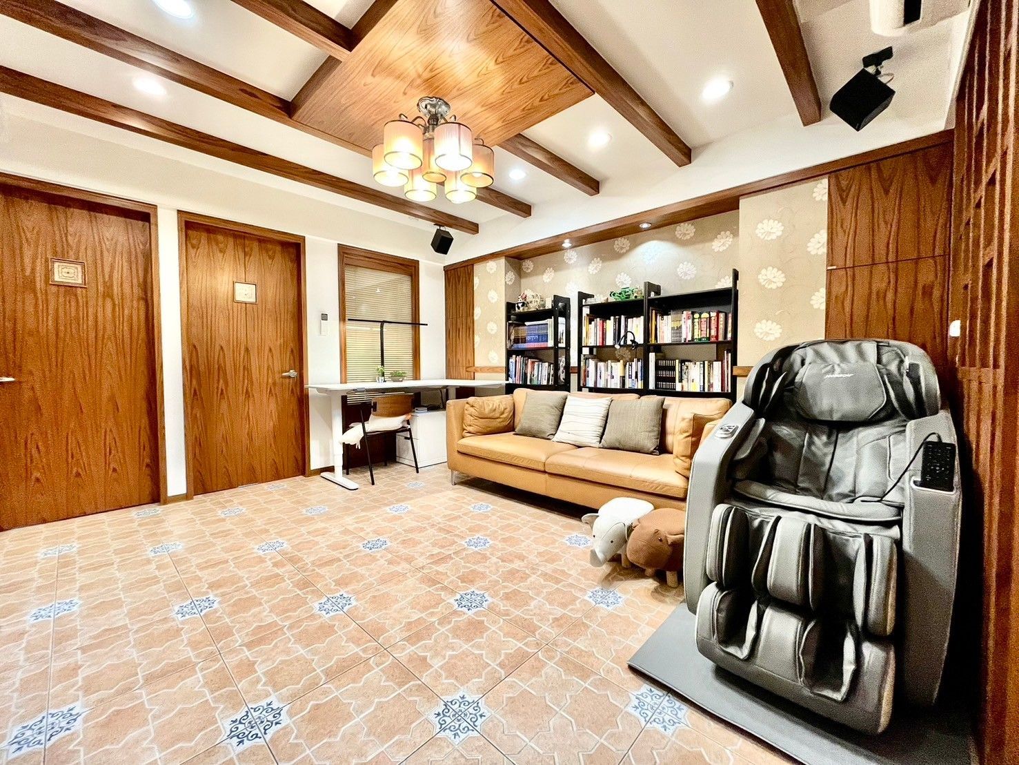 Entryway, Living room(Massage Chair, Standing desk), Dining room, Kitchen, Laundry room