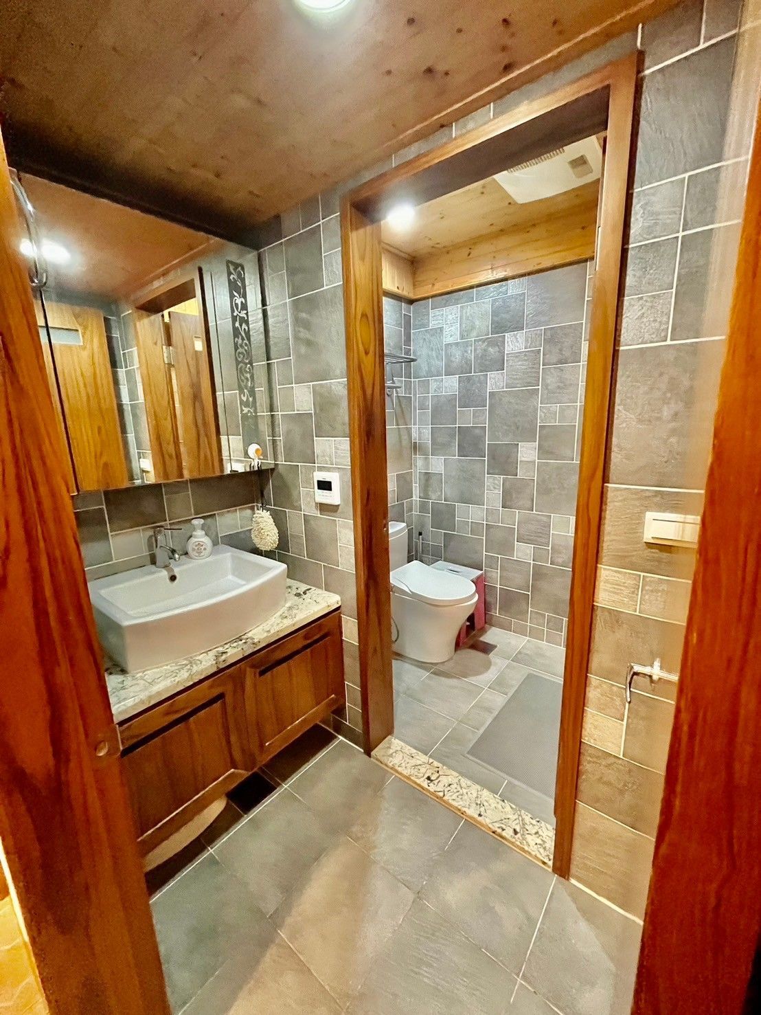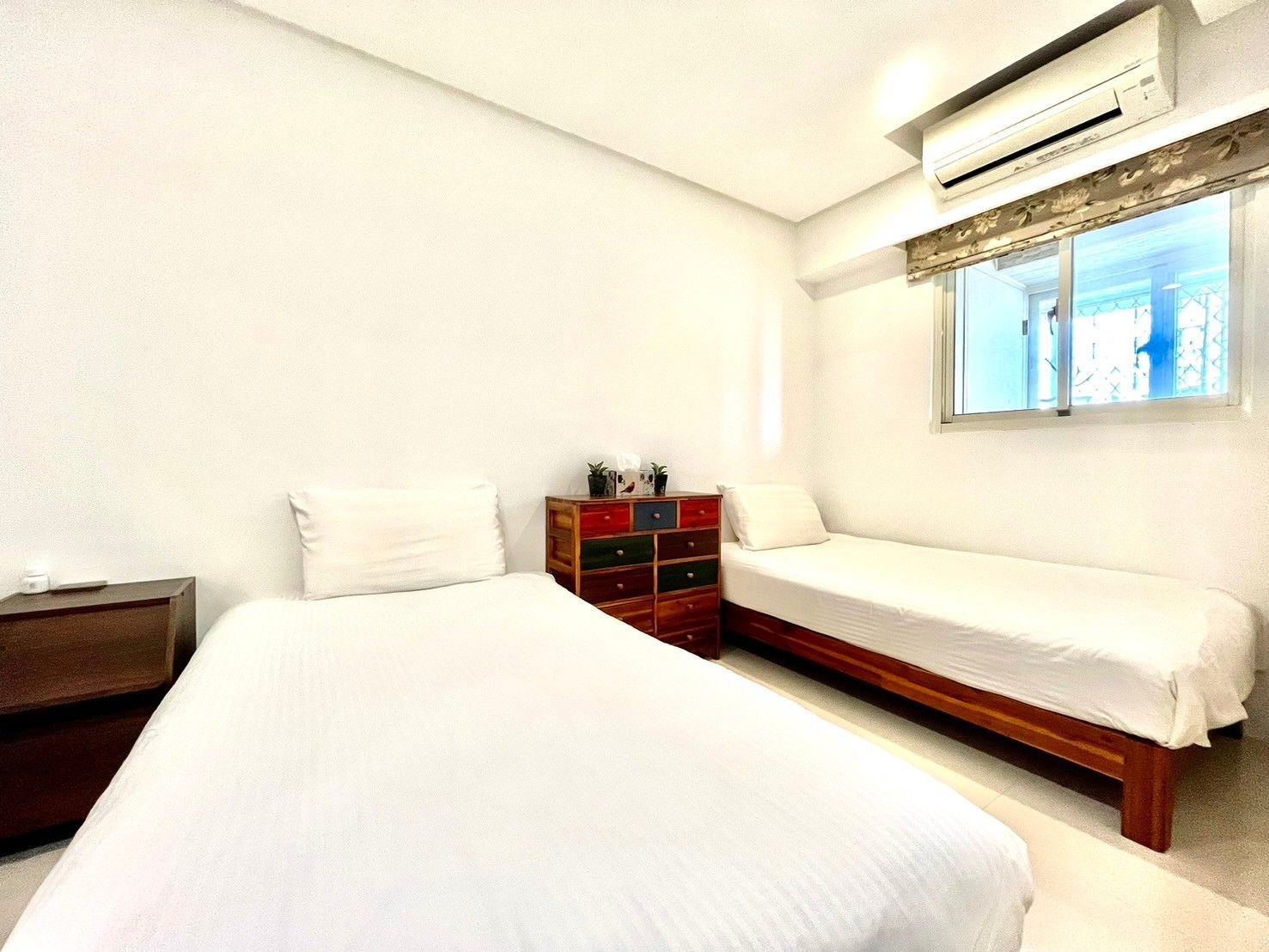 Best Choice for the big familyBig Unit with 3 Bedrooms and 2 Bathrooms3 Bedrooms - One with 1 queen size double bed, one with 1 standard double bed, and the other with 2 single beds.2 Bathrooms with shower room- One is in the main bedroom, and the other is in the dining area.Big living room, Big dining room, Big kitchen and big laundry room.